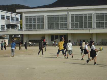 そのコートを使って,昼休み,ドッジボールをする子どもたちでした。