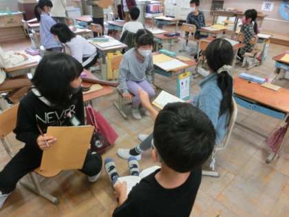 陵ヶ岡校区にある物や場所で,学校に来られた人に紹介したいと思うところを考えました。陵ヶ岡校区にしかないもので,紹介したい所と言えば・・・・ペアやグループで思い当たるところを考えてみました。「御陵・日時計・緑の小径・琵琶湖疏水・亀の水・・・」などなど出てきました。が,まだまだありそうなので,一人ひとり調べてくることにしました。