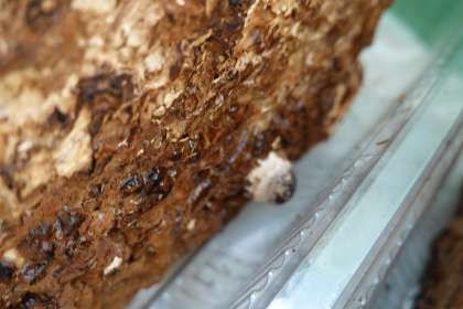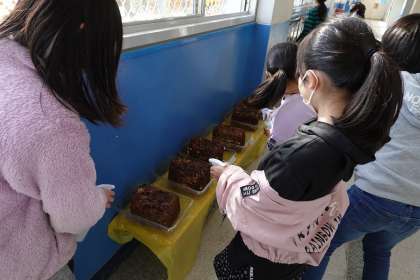 朝,菌床から小さな椎茸が生えてきているのを発見しました。どうやら,この椎茸は目を覚ましたようです。そのことを知ると,「すごい。」「いいな。」とびっくりしたりうらやましがったりする声が聞こえました。「ぼくのはまだ寝ているな…」と話している子もました。みんなの椎茸が目覚めてくれるといいなと思います。