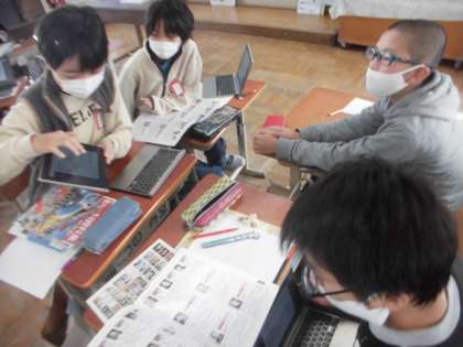GIGA端末でまとめたものを使って友達に伝える学習です。