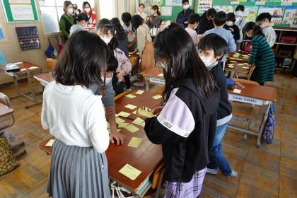 今日は,土曜参観で子ども達は朝から少し緊張していましたが,国語科の学習でたくさんの慣用句カルタを作ることができました。作ったあと,カルタで遊んでみると,「自分が調べていない慣用句の意味がわかった。」「もっと慣用句を調べたいと思った。」などと,慣用句に興味をもったり,楽しく慣用句を学ぶことができたとわかる感想がふり返りに書かれていました。