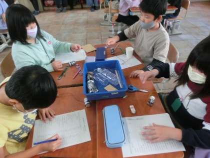 どのようなものが電気を通すのか実験しました。乾電池をつないで回路になるようにして,いろんなものを調べていきました。子ども達は,意欲的に実験を行うことができました。最後には電気を通すものと通さないものに分けることができました。3年生になって初めてお家の方々に来ていただいて,嬉しかったようです。お忙しい中ありがとうございました。