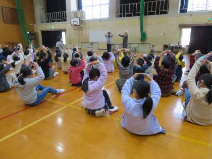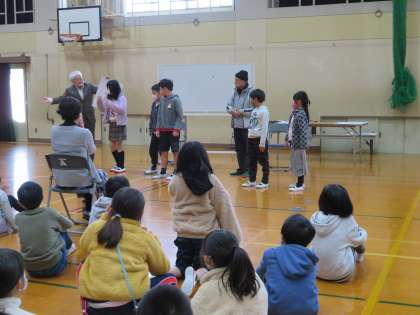 「身体に障害のある方のことを理解する」というテーマで,分かりやすく話していただきました。コンビニで耳の不自由な方にお店の品物を伝えることはとても難しいことが分かりました。また,声をかけても分かってもらえないので,どうすれば耳の不自由な方に伝えたらいいのかということも学びました。また,声を出さずに手ぶり身振りをして,スポーツを伝える体験をさせてもらいました。そして,手話で簡単な挨拶の仕方を教えていただきました。