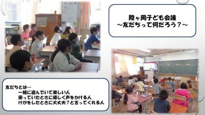 今日は陵ヶ岡子ども会議がありました。今回のテーマは「友だちってどんな人?」でした。読み聞かせを聞いて,友だちとはどんな人なのか,これからどんなことを意識していきたいか考えました。