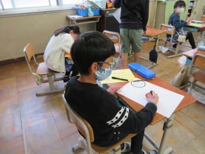 隣の席の友だちのいいところ,素敵なところをかるたにしました。「いいところがたくさんあって迷うな。」と隣の友だちを眺めながら考える姿が見られました。