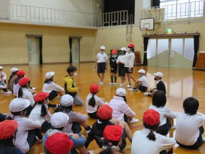1組2組のみんながもっともっと仲良くなるために,遊びを計画しました。今回は「王様とり」です。司会進行の子が活動を進めてくれました。初めの言葉,ルール説明の後,みんなで楽しく行いました。最後には,終わりの言葉,参加賞で締めくくりました。最後の振り返りで,「今日は楽しかったので,また休み時間にしたいです。」と言ってくれた子がいました。