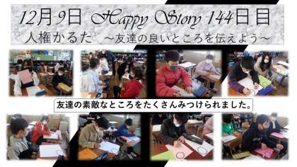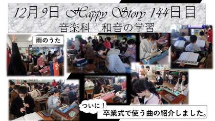 144日目。2学期も終わりが見えてきました。一気に卒業を実感し始めた今日この頃です。さて,今日はどんなHappy Storyがあったのでしょうか…?