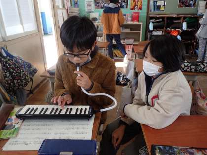 音楽科の授業の後。中間休みには早速練習をしている子たちが!