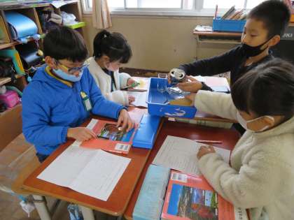 磁石を使って「磁石に引きつけられるもの」と「磁石に引きつけられないもの」には,どんなものがあるのか実験をしました。鉄の釘,銅の釘,アルミ箔,輪ゴム,段ボール,ガラスのコップ・・・・と実験を行いました。鉄は磁石に引きつけられることが分かりました。しかし,はさみの持つ部分のプラスチックの部分でも引きつけられました。どうしてなのかみんなで考えました。