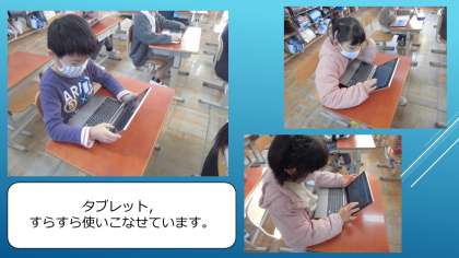タブレットは,すぐに使いこなせるようになっています。国語や算数の復習をすらすらとやる姿は,頼もしいです。