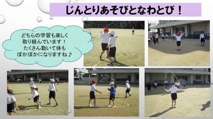今日の体育ではじんとりあそびと縄跳びの学習を行いました!