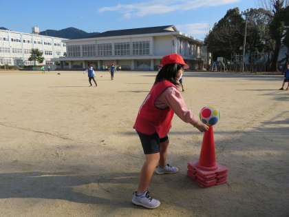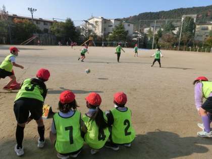 昨日は1回目でルールがわからない子も多かったですが,今日はルールに少し慣れた様子もありました。また,友だちから「頑張れ!」,「ドンマイ。」と声をかけてもらったと振り返りに書いている子がいました。難しいルールで失敗してしまうこともあるけど,チームのみんなが「もっと頑張ろう!チャレンジしよう。」と思えるように声掛けも意識していきたいですね!