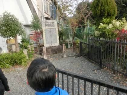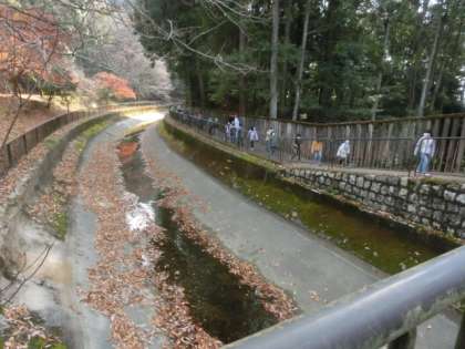 天智天皇陵の日時計見て,琵琶湖疏水に行きました。「1年生の時ランニング大会で走ったところだよ。左側は,まだまだ御陵だよ,広いね。」と言いながら進みました。