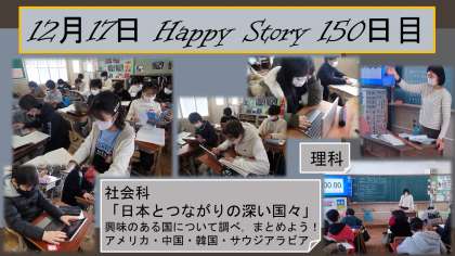 毎日続けてきたHappy Storyもついに150日目です。ここまで来たらもうやめれられないね!と子どもたちに励まされる日々です。6年生として陵ヶ岡で過ごすのも後54日です。すぐに終わってしまいそうです…。