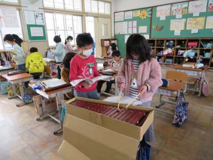 リコーダーの2つのパートと,鉄琴(木琴)のパートを練習しています。「鉄琴(木琴)は,楽譜を見ながら叩くのは難しいので,階名で歌えるようになることが大切。」と言って頑張っています。演奏会をしたいです。頑張って。