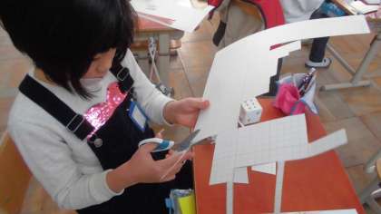 算数科では,3学期から「はこの形」の学習に取り組んでいます。はこの形づくりは大変楽しいようで多くの子どもたちが積極的にたくさんのはこの形を作ることができています。