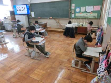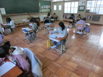 3年生で初めて,本格的なテストをしました。プレジョイントプログラムは,問題用紙と解答用紙が分かれています。解答用紙に書き忘れないように,違う番号の所に書き込まないように,気を付けて取り組みました。最後の問題までできたかな?