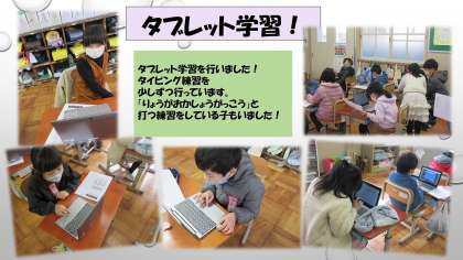 本来であれば,運動場で体育でしたが,雪が降ったため中止となりました。その中止になった時間に,タブレット学習を行いました。