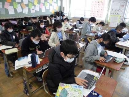 国語科の学習をもとめる文章もGIGA端末で作成し,決められた提出場所に提出する。