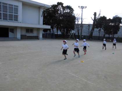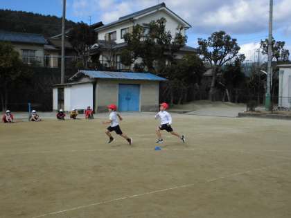 寒い中でしたが,2年生は運動場で元気いっぱい走りきりました。