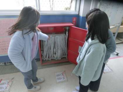 先日,学校の中にある消防施設を探しに行きました。今日は,その施設がどこに,どのくらいあるのか発表しました。防火バケツ,消火器,消火栓,防火扉などなどたくさん見つけました。学校には,みんなの安全を守るためにたくさんの消防施設があることが分かりました。