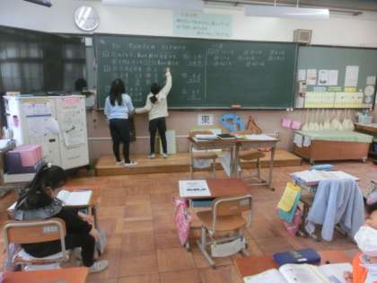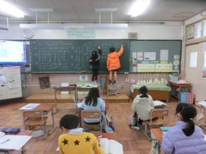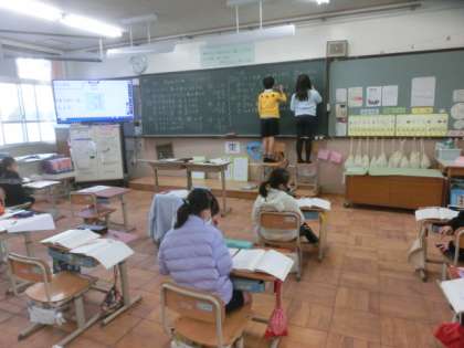 「復習」をしました。今までに学習したことができるようになっているか,確かめながら進めました。みんな黒板に書きに行くのが大好き。順番に黒板に答えを書きに行きました。もうすぐ「まとめ」です。しっかり出来るようになっていてほしいです。