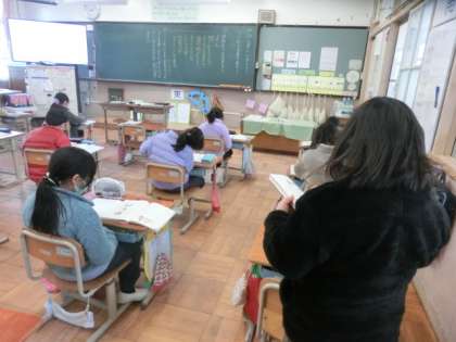 自分が体験したことや,その時に感じたことを伝えるとき,「すごかった。」「おもしろかった。」だけでは,何がどうすごかったのか,おもしろかったのか相手に伝わりません。伝えたいことを言葉で表すことについて考えました。冬休みの出来事とその時の気持ちについて書いた文章を,相手に伝わりやすい文章になるよう書き直していきます。
