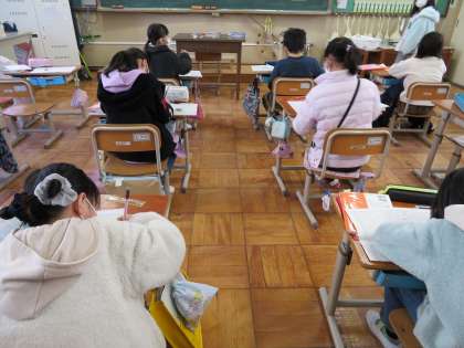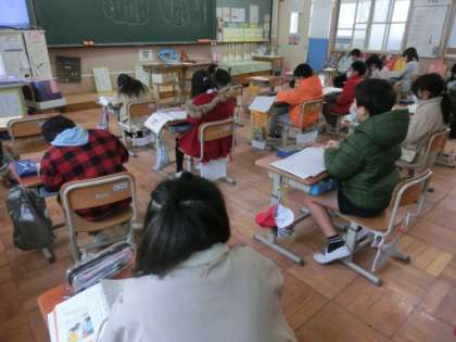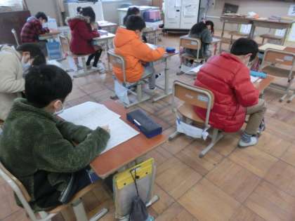 今日は,言葉を選んで冬休みの出来事を二百字以内で書きました。読む人が,様子や気持ちを思い描けるように文章を書きました。書き終わったら,内容が伝わるような題名も付けました。みんな頑張って書きましたが,「二百字では書けない。もっと書いていいですか。」という子が何人もいました。