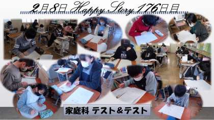 1,2時間目は家庭科でした。1年間のまとめのテストと研究会テスト,2つもテストを頑張りました。なかなか難しかったようですが,自信はあるようです。自分で考えて,自主学習で復習をたくさんやってきた子もいました。素敵ですね〜!!テストを受けている様子も集中していて素晴らしかったです。