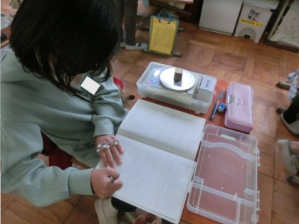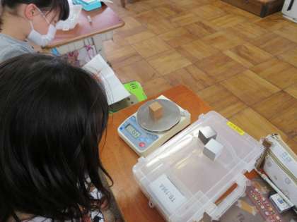 今日の理科では「体積が同じものでも,ものの種類がちがうと重さにちがいがあるのか」という問題を実験しました。