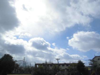 子どもたちと運動場で遊んでいたときに見た空です。
