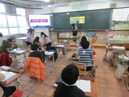今回初めてそろばんを使ったり,見たりする子もたくさんいました。初めは「わからないよ!」,「どんなふうにすればいいの?」と戸惑っている様子でしたが,習っている子たちに教えてもらいながらみんなどんどん使えるようになっていきました。