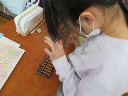 今日から算数は「そろばん」をはじめました。