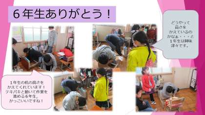 今日,6年生が1年生の教室にきて机・いすの高さを変える作業をしてくれました!