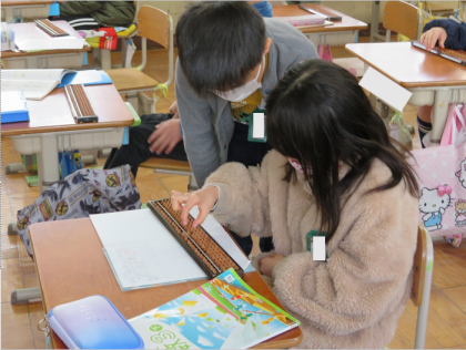 そろばんの学習ではくり上がりやくり下がりの学習をしました。