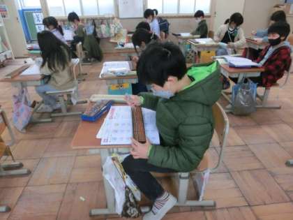 今日は,そろばんを使って繰上がりのたし算,繰り下がりの引き算をしました。ちょっと難しかったけれど,ゆっくり玉を動かして考えました。また,分からなくなった子には,そろばんのことをよく知っている子が教えに行ってくれました。