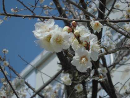 一昨日,つぼみだった梅の花が,少しずつ花を咲かせ始めました。