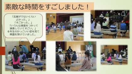 合奏がはじまると1年生たちも,真剣に6年生が奏でる音色を聴きいっていました。