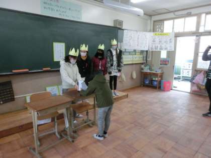 6年生から「かるた」をいただきました。陵ヶ岡のことが紹介されている「かるた」です。いただいた後,早速みんなでやってみました。とても楽しくて,笑顔いっぱいで行いました。6年生ありがとう。「かるた」大事にします。中学へ行っても頑張ってくださいね。