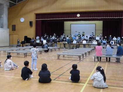 先週の金曜日の「6年生を送る会」で合奏していただいた6年生の合奏を体育館で今日聴かせていただきました。すてきな音色に耳を傾け,頑張る6年生の姿に刺激され,「3年生で僕も頑張ろう!」「6年生みたいになれるかな。」という声が聞こえてきました。6年生のみなさん,2年生のために合奏をしてくれてありがとうございます。残りの小学校生活も充実させてくださいね。