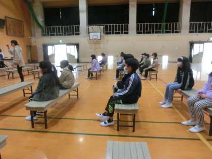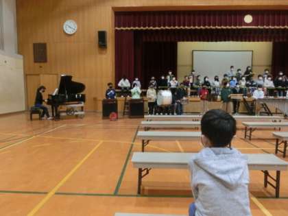 6年生に「ストーリー」の合奏を聞かせてもらいました。ピアノの前奏で始まり,みんなが指揮者のリズムに合わせて音を重ねていきます。6年生全員の息がぴったりで,3年生は物音も立てずに聴いていました。私たちも6年生になったらこのようにいろんな楽器を持って,演奏するのかな?こんなに上手にできるのかな?と思ったようです。6年生,素敵な演奏聴かせてくれて,ありがとう。