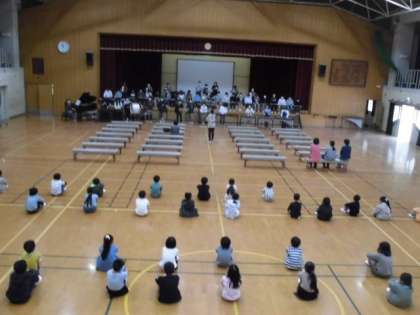 すごくよい姿勢で真剣に合奏を聴いてくれた2年生・3年生