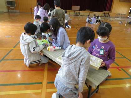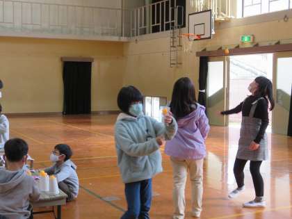 次は,お店屋さんと体験グループが交代して行いました。ピン球が「ポーン」と高く飛ぶおもちゃを体験させてもらっている子もいました。