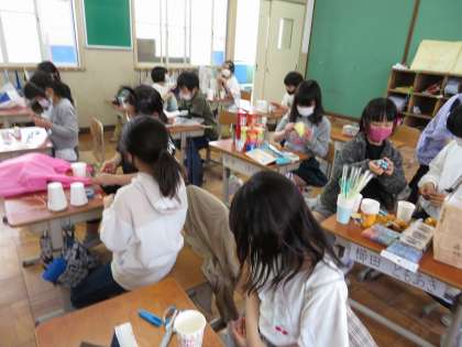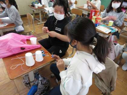 ねじったゴムが戻る力を使って,動く仕組みを作って楽しいものを作りました。乾電池を使ってトコトコ動くおもちゃや紙コップを使ってすうっと持ち上がるおもちゃを楽しんで作りました。切り込みを入れたり穴をあけたり難しいところがありましたが,楽しいおもちゃができました。