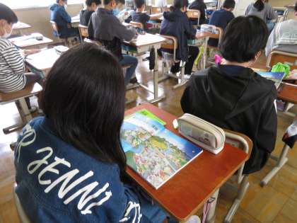 新しい理科の先生の自己紹介があり,「そうなんだあー!」とみんな声をあげたり質問したりして楽しんでいました。そのあとは理科の教科書を見てこの1年でどんな学習をするのかを確認しました。
