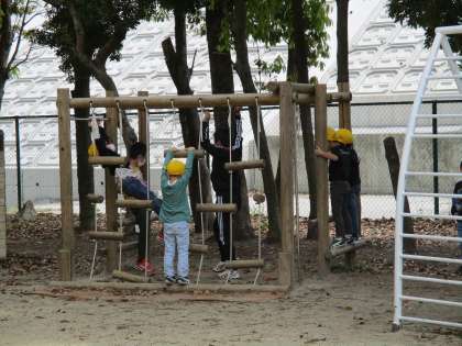 お天気の良い日には,みんな運動場や中庭などに出て楽しく過ごしています。