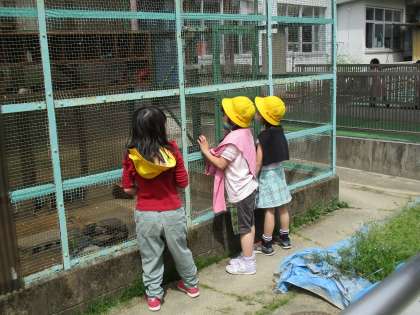 遊具で遊んだり,運動場で鬼ごっこをしたり,池の魚や飼育小屋のセキセイインコを見たりと思い思いに過ごしています。時には,上級生が一緒に遊んでくれているときもあります。