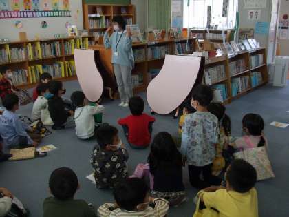 予想はしていたものの書棚を見て「わぁ。たくさん本があるね。」とびっくりした様子でみんなあちこちを見渡していました。