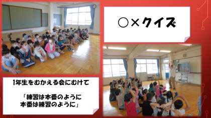 1年生が楽しめるように○×クイズの練習をしています。