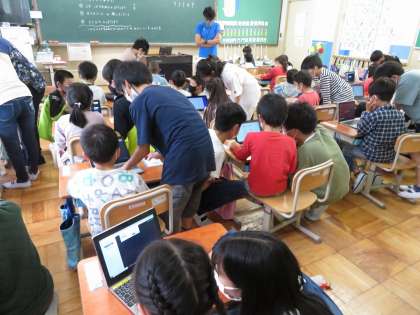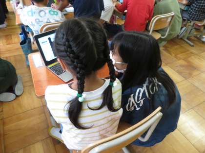 6年生になるとタブレットをサクサク使っていますが,初めて使う上に1年生に教えるというのは思いのほか難しかったようで,どうすれば1年生に理解してもらえるか,言葉を選びながら優しく教える姿が見られました。最後には1年生が一人で電源を入れてログインできるようになっていました!教えたことができるようになるとうれしいですね。